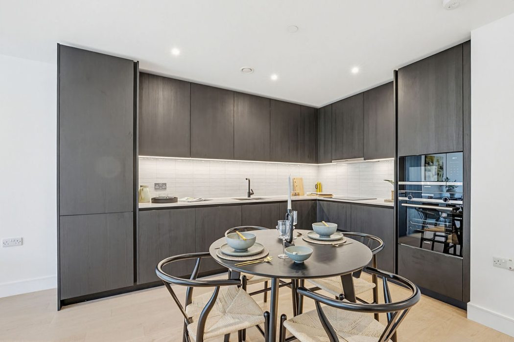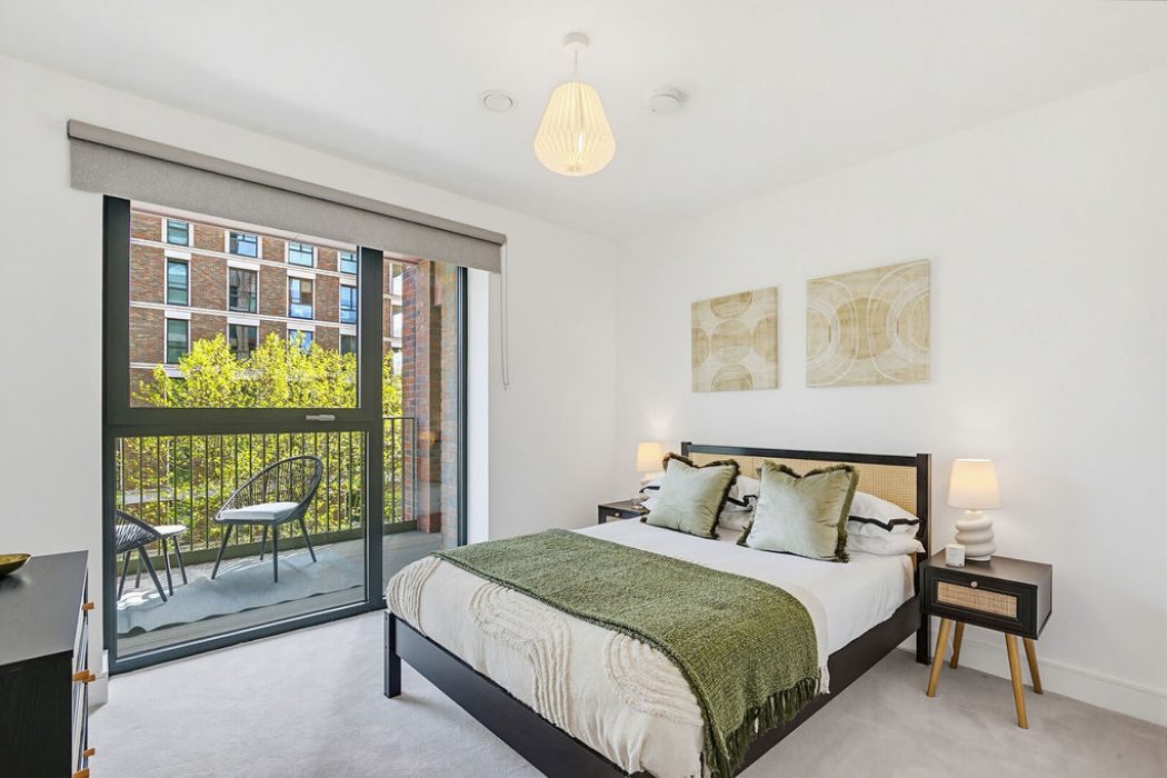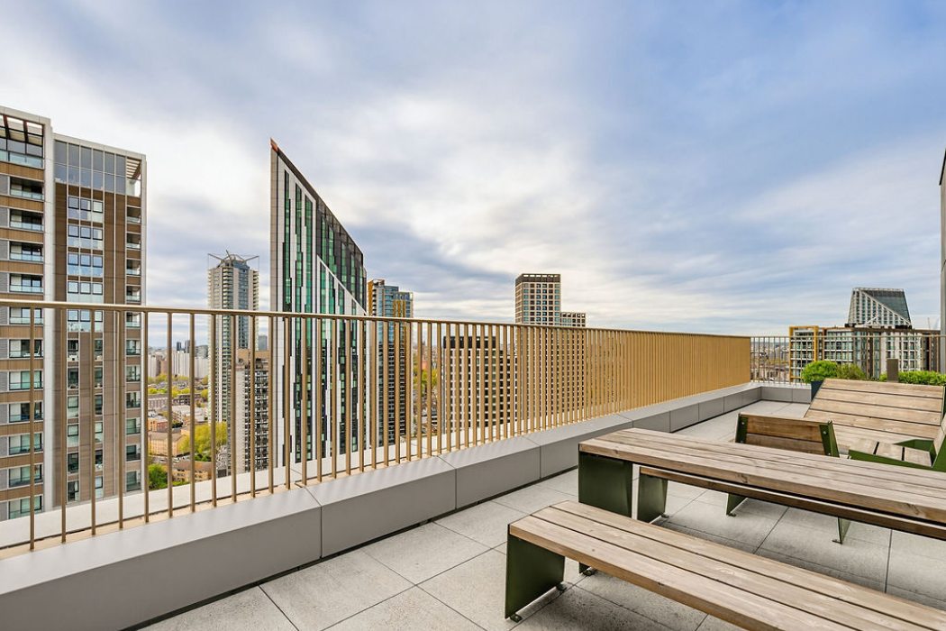 The building forms part of a wider scheme of 229 apartments, designed around landscaped green space and a growing neighbourhood of cafés, restaurants and local amenities. For renters, this creates a balance between central London access and a well-planned residential environment.