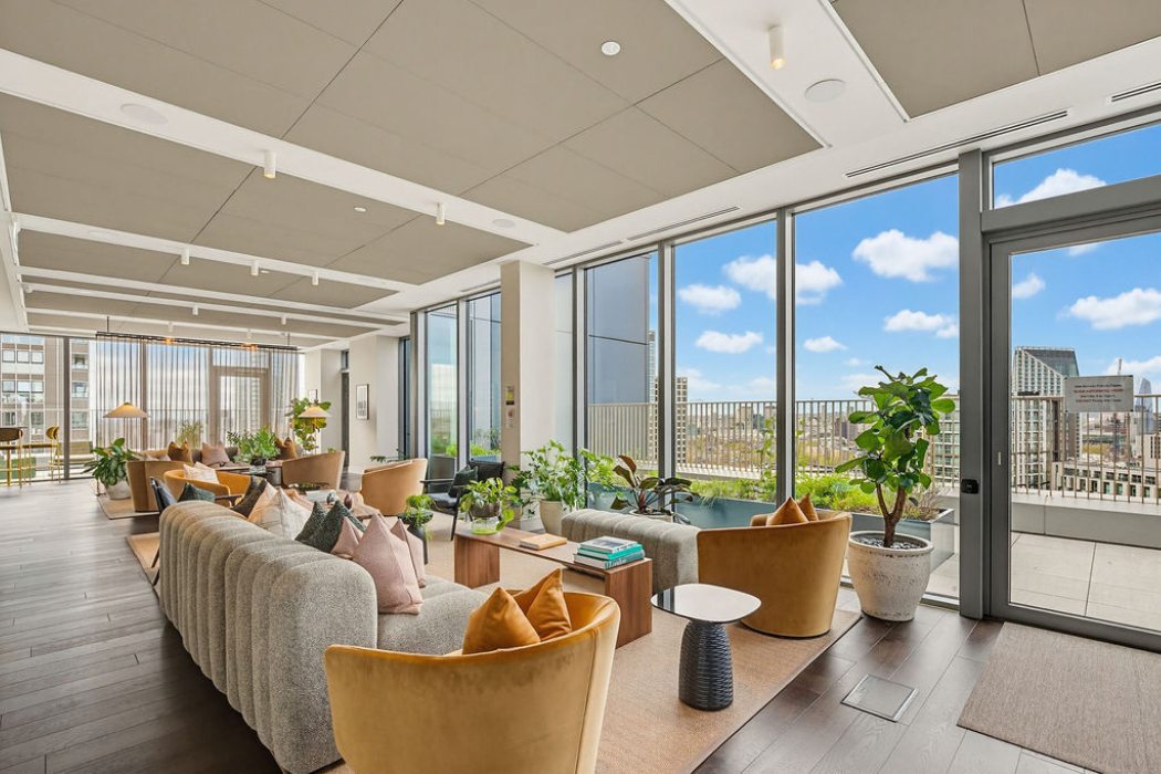 The standout feature is the sky lounge and roof terrace, providing views across London and creating a genuine extension of the living space beyond the apartment itself.