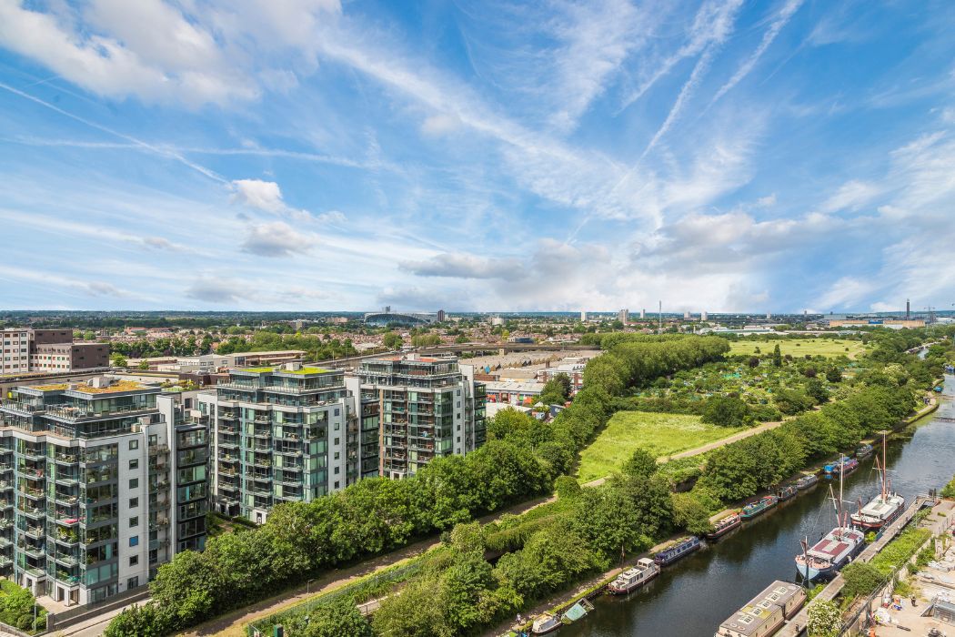 Upper floor apartments also benefit from views of Tottenham Hotspur Stadium, an unexpected landmark from a waterside address.